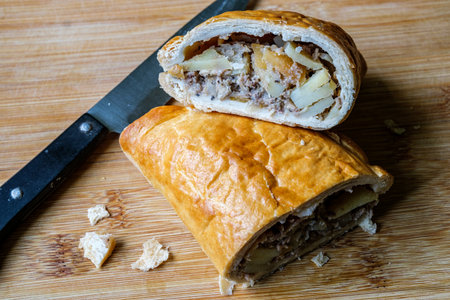 Capture the essence of Cornish Pasty in a mouthwatering food photography shot