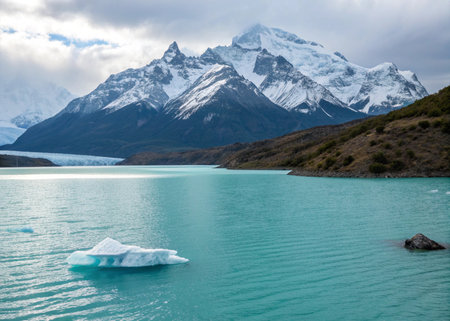 View of Iceberg floating in the Lake Grey at the Torres del Paine National Park in Southern Chilean Patagonia, Chile