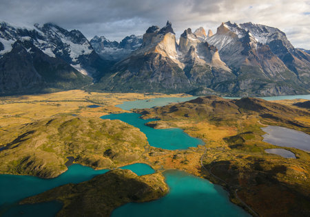 Aerial view of Torres del Paine National Park, Patagonia, Chile