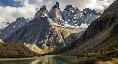South America - Patagonia - Torres del Paine National Park in a cloudy day - Beautiful natural landscape - Travel Destination - Landmark