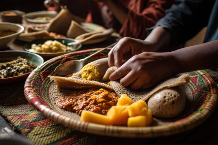 Traditional mexican colorful woven fabrics. Close-up of colorful fabric., ai generated