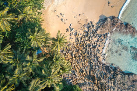 fisherman boat and Vintage wooden boat in sea. Boat drone photo..Aerial view of tropical island beach holiday yacht on blue reef ocean
