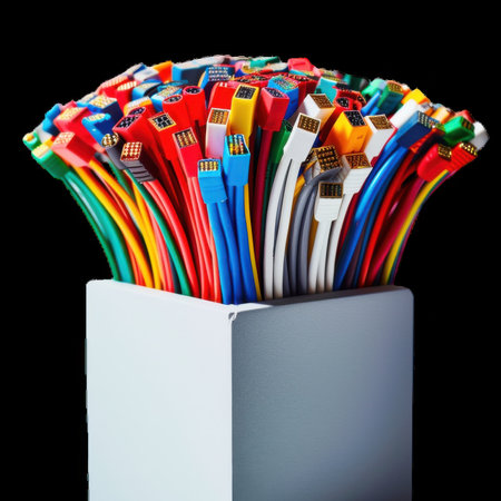 A stunning close-up view of colorful cables arranged in a vibrant pattern. This image showcases the beauty of technology through vivid colors and intricate details.