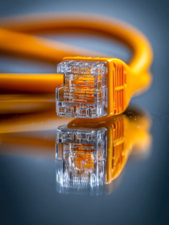 A striking orange connector gleams against a polished surface, capturing the essence of rapid connectivity and futuristic communication networks in vivid clarity.