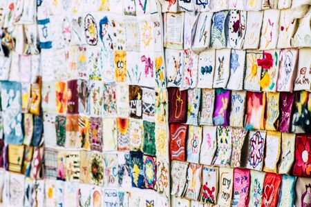 Jerusalem Israel October 06, 2019 View of poster patchwork hanging on the wall in the Old city of Jerusalem in the afternoon