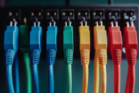 Colorful network cables representing ai, web tech, cloud storage, and video conferencing features