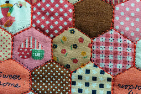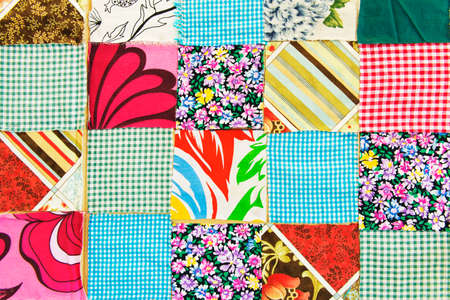 Colorful patchwork quilt background. Close up image of a patchwork quilt.