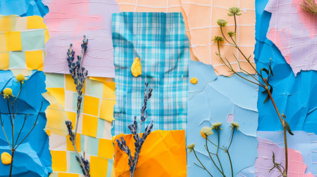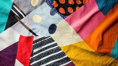 A collage showcasing an assortment of colorful fabric scraps, creating a textured mosaic that is a feast for the senses and a patchwork of creativity.
