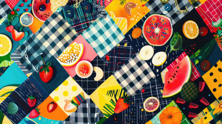 multicolored plaid patches arranged in a grid pattern, created with generative ai