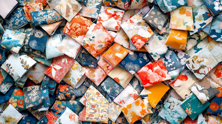 A vibrant collection of beautifully crafted patchwork fabric pieces, perfect for inspiring crafts and decor ideas. Generative AI
