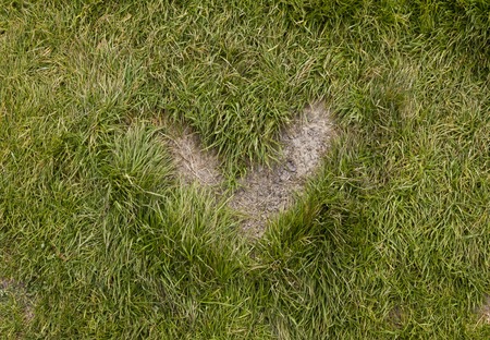 Scalped turf with earth and grass in a meadow