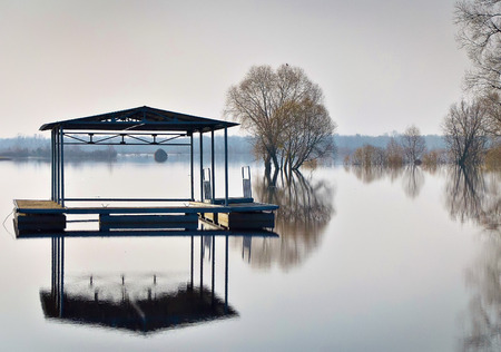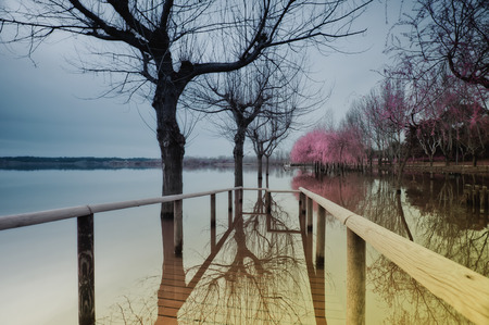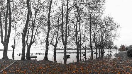 Varese lake overflow in Gavirate, autumn season - Lombardy, Italy