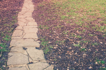 Stone path winding through lush grass. High quality photo