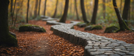 AI Generated. Stone Pathway Winding Through a Wooded Landscape