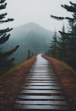 road from planks mountain landscape, realistic illustration