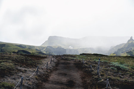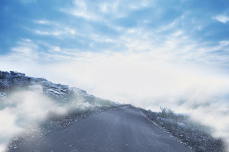 Foggy trail somewhere in the clouds. Carpathian mountains, Ukraine