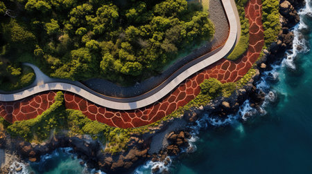 Generative AI, Aerial view of curved asphalt road near the ocean or sea, coastline