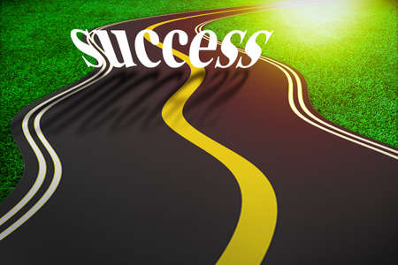 Success word written on the road with arrow on nature background with sunlight. Business planning concept and new year beginning success idea