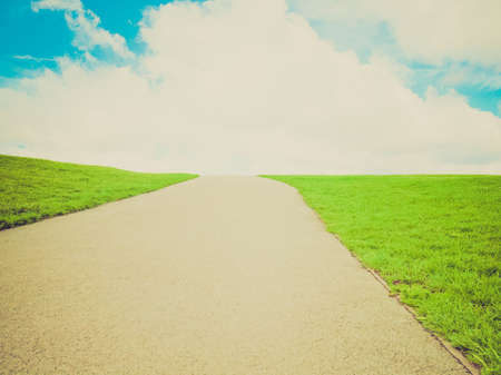 Follow your path concept, asphalt footpath in diminishing perspective, selective focus