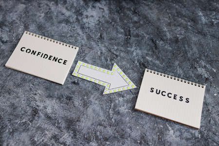 psychology and attitude concept, from Confidence to Succcess message with notepads and arrow