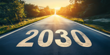 Road to 2030, Concept image of a highway road to the future with the inscription on the asphalt