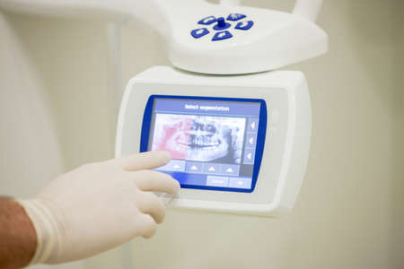 Doctor using tablet pc with x-ray image. Medical and healthcare concept.