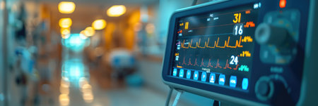 Vital Signs Monitor Displaying Patient Health Data in a Modern Medical Facility Setting
