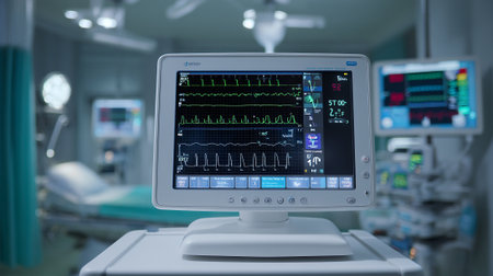 Modern Medical Monitor Displaying Patient Vital Signs and Heart Activity in Hospital Setting