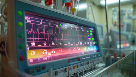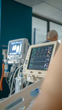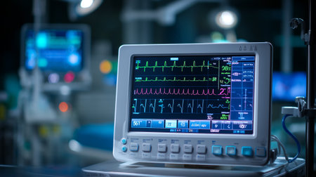Advanced Medical Device Displaying Real-time Heart Activity and Vital Signs in Hospital Setting