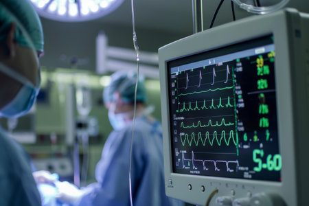Medical Monitor Displaying Patient Vital Sign Readings in a Modern Operating Theater Environment.