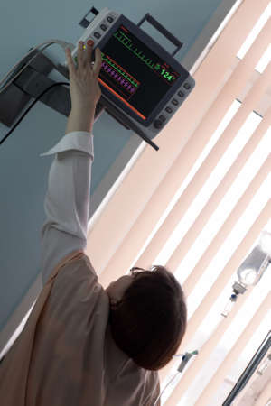 Heart rate ECG pulse monitor screen for surgery operation room in hospital
