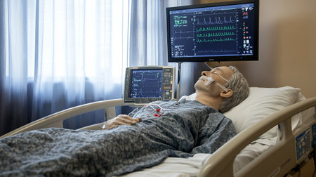Advanced Patient Monitoring System Displaying Vital Health Indicators in a Hospital Setting.