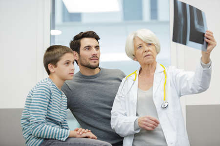 female doctor pediatrician and boy looking at xray