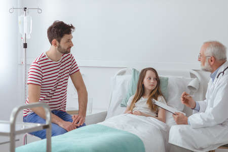 Father with young child listening about her disease