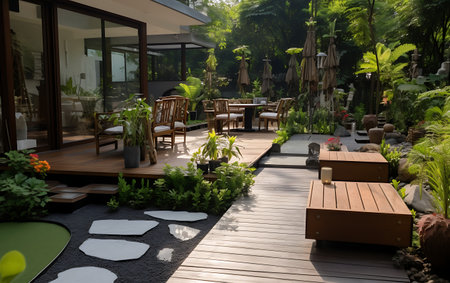 Generative AI : Garden natural eco cafe outdoor at spring and summer season