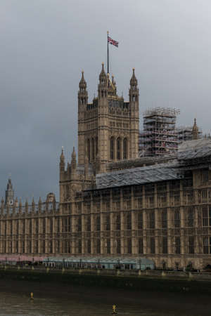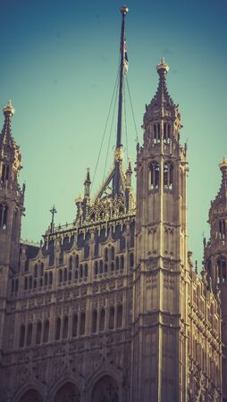 Palace of Westminster fragment (known as Houses of Parliament) located on bank of River Thames in City of Westminster. London, UK.