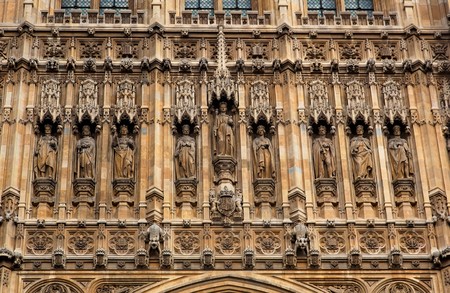 Facade above Sovereigns Entrance. The Houses of Parliament. London. UK.