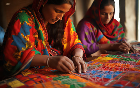 Rural Artisans Creating Colorful Embroidery Designs on Textiles