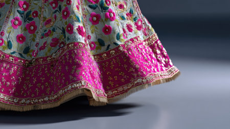 A stunning close-up view of traditional fabric showcasing intricate embroidery and vibrant hues, capturing the essence of craftsmanship and cultural beauty.