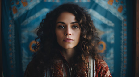 Vibrant handwoven textile with intricate geometric patterns and bright colors. That the image is generated using AI.