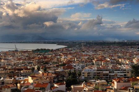 Cloudy cityscape with mountains at Patras, Peloponnese, Greece
