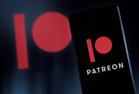 Patreon logo on smartphone screen and background. Milan Italy January 2023