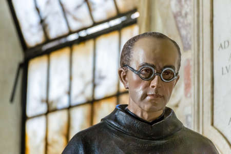 RAVENNA, ITALY - SEPTEMBER 12, 2018: light is enlightening statue of Saint Maximilian Kolbe in Saint Francis church