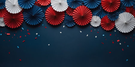Colorful paper decorations create a festive atmosphere for celebrations in red, white, and blue hues