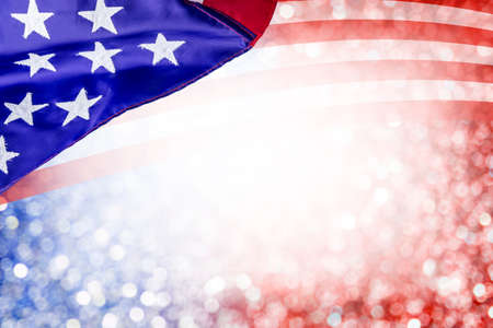 American flag and bokeh background with copy space for 4 july independence day and other celebration