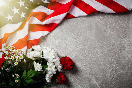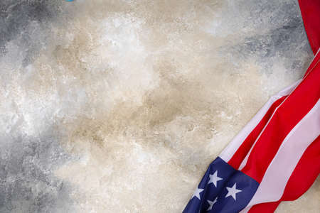 Flag United States of America on gray Background. Memorial Day or 4th of July