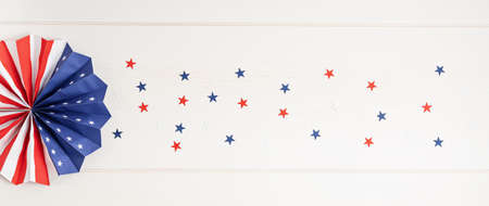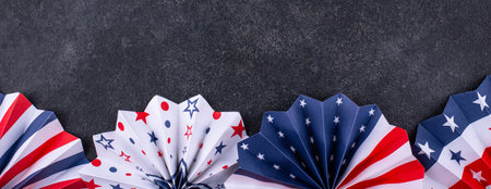 4th of July holiday banner design. USA theme paper fans. Independence, Memorial Day pinwheels