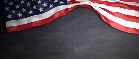 USA flag placed on chalkboard background with copyspace. 3d illustration
