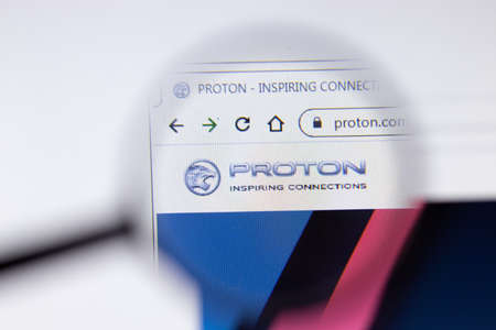 Saint-Petersburg, Russia - 18 February 2020: Proton company website page logo on laptop display. Screen with icon, Illustrative Editorial.