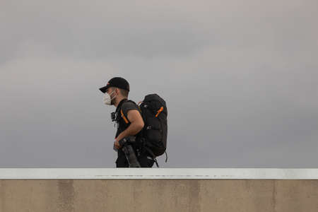 Tel Aviv Israel January 30, 2020 View of unidentified press photographer shooting people at Herbert Samuel Promenade in Tel Aviv in the morning